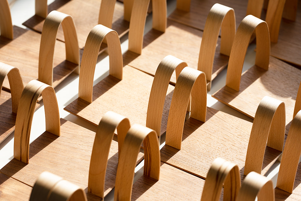 The stopper is made of beech (snow beach) bent into a mountain-like curve that is unique to Storio. The unique form combined with the pure naturalness gives off a unique presence and harmonizes with any interior.